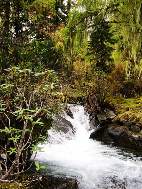 D3:春场棚→月亮湖→五色海→松树滩→瀑布群→马尔康(全程约80公里,山道和省道)