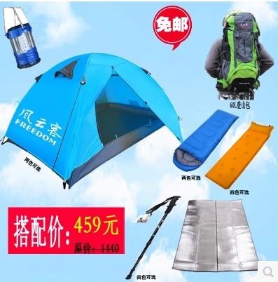 > 野外露营帐篷户外防暴雨双层套装全套 旅游用品 登山包睡袋充气垫