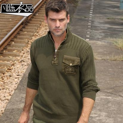 凡陈衣品厚款男毛衣 宽松大码针织衫 军装休闲户外棉线衫外套