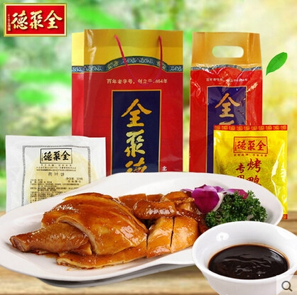 > 北京全聚德烤鸭1000g带饼酱680g真空包装荷叶饼/酱/礼袋正品包邮